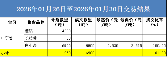1月26日-1月30日 (2026年 第4期) 省粮油交易中心