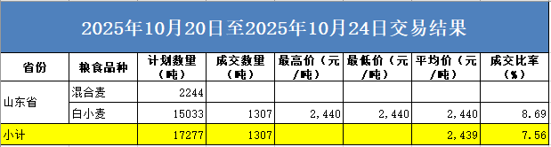 本周国家政策性粮食山东地区无交易。