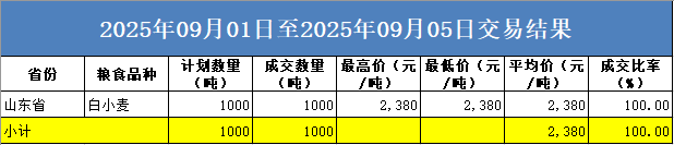 本周山东贸易粮小麦挂牌销售计划数0.1万吨,全部成交。