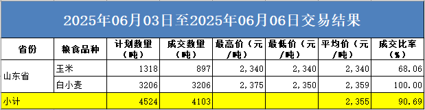 本周山东贸易粮销售计划0.45万吨,成交0.41万吨。