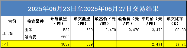 本周山东贸易粮交易计划0.3万吨,成交玉米0.05万吨。
