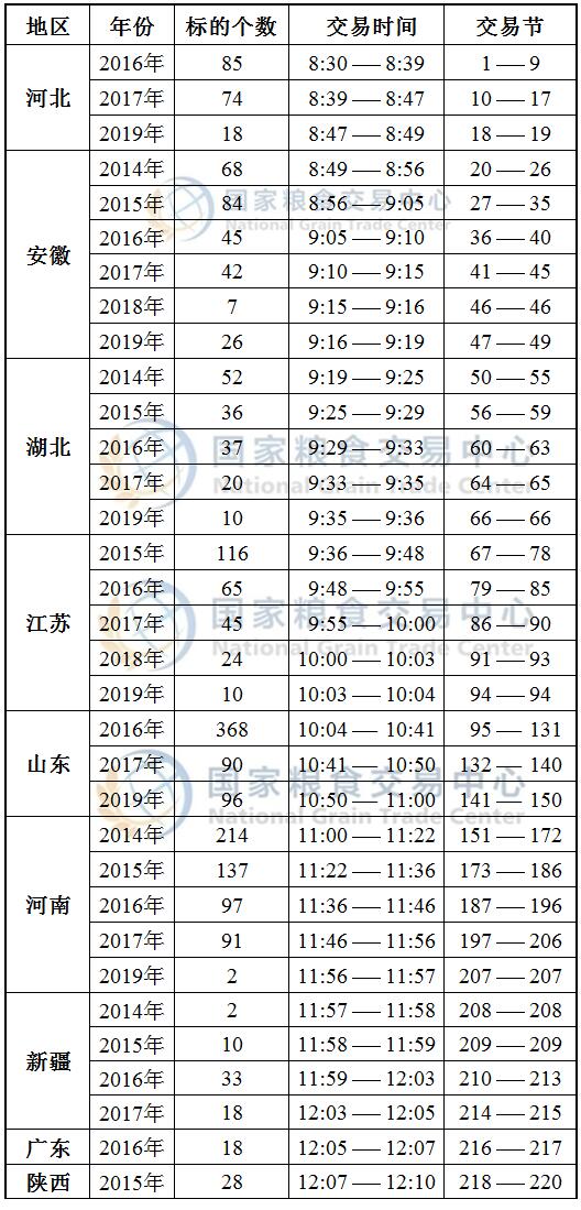 最低收购价小麦、国家临时存储小麦于8:30开市交易,预估竞价交易时间如下: