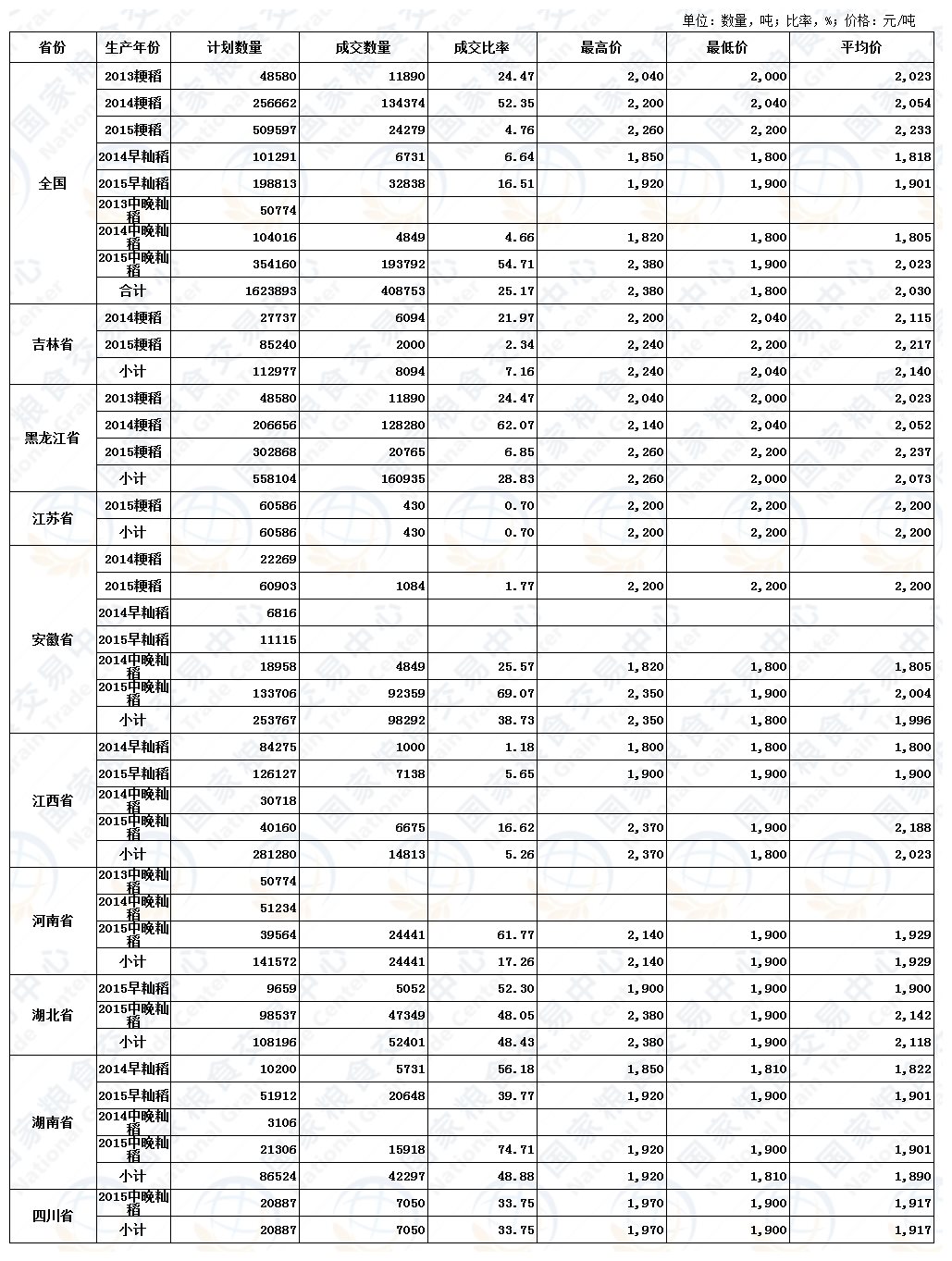 6月28日最低收购价稻谷(2013-2015年)交易结果