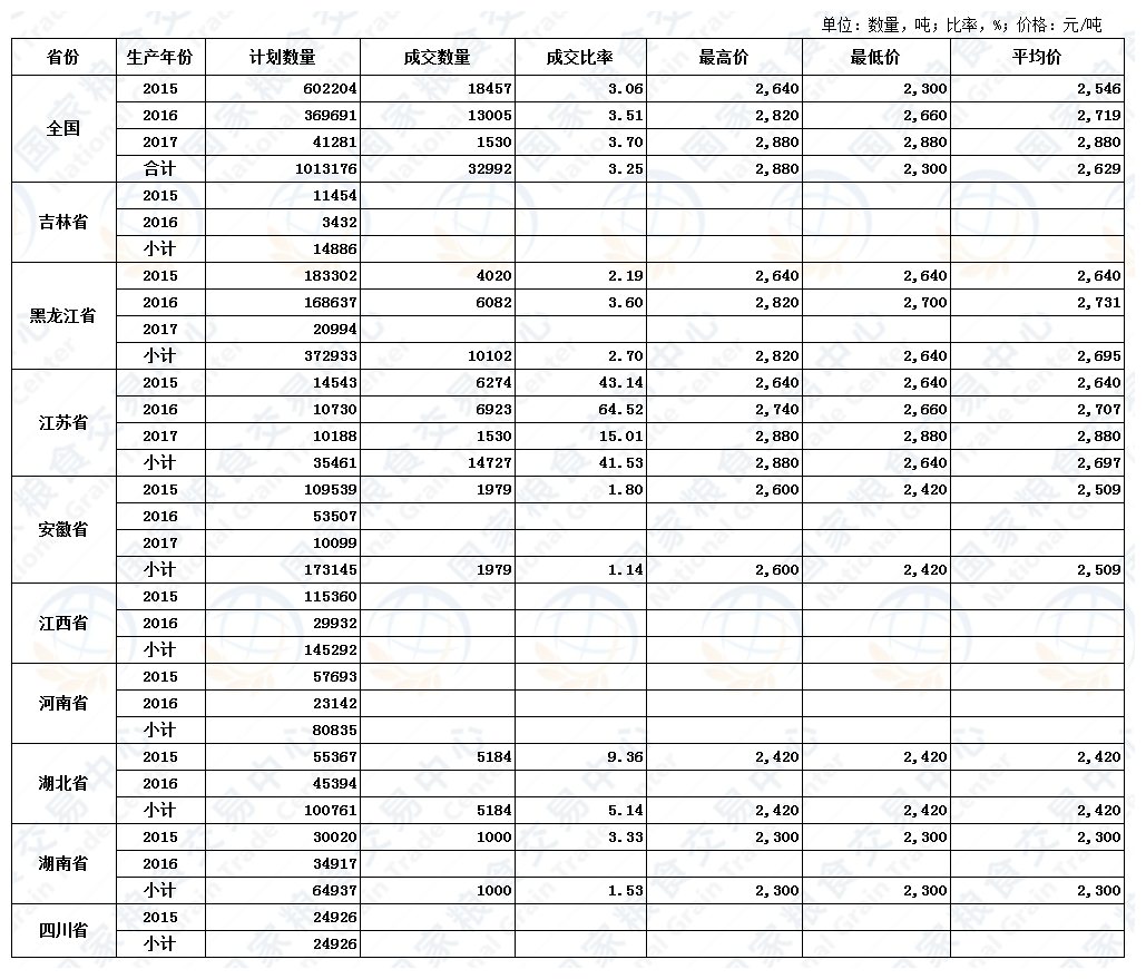5月7日最低收购价稻谷(2015-2017)交易结果