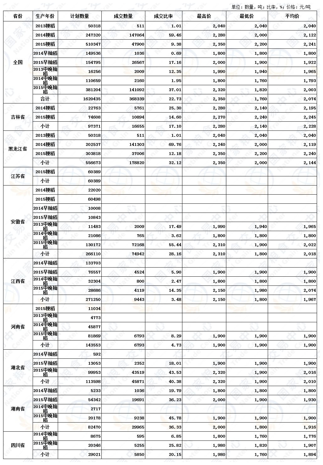 6月21日最低收购价稻谷(2013-2015年)交易结果