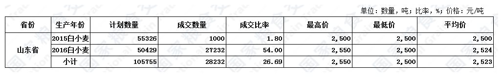 11月7日山东小麦交易结果