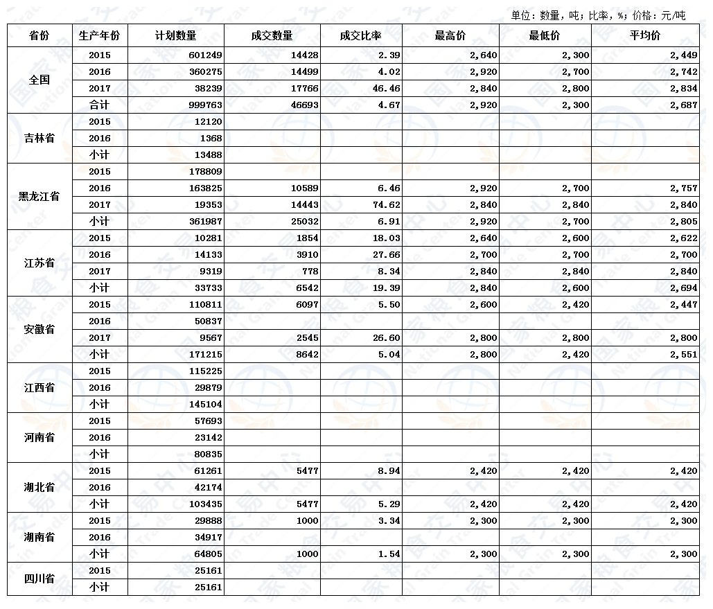 4月23日稻谷(2015-2017)交易结果