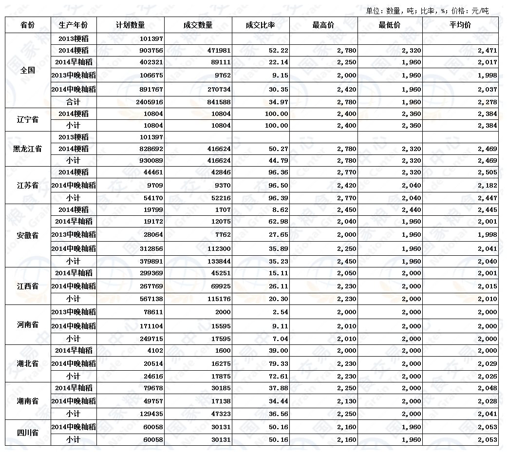 3月28日最低收购价稻谷(2013年、2014年)交易结果