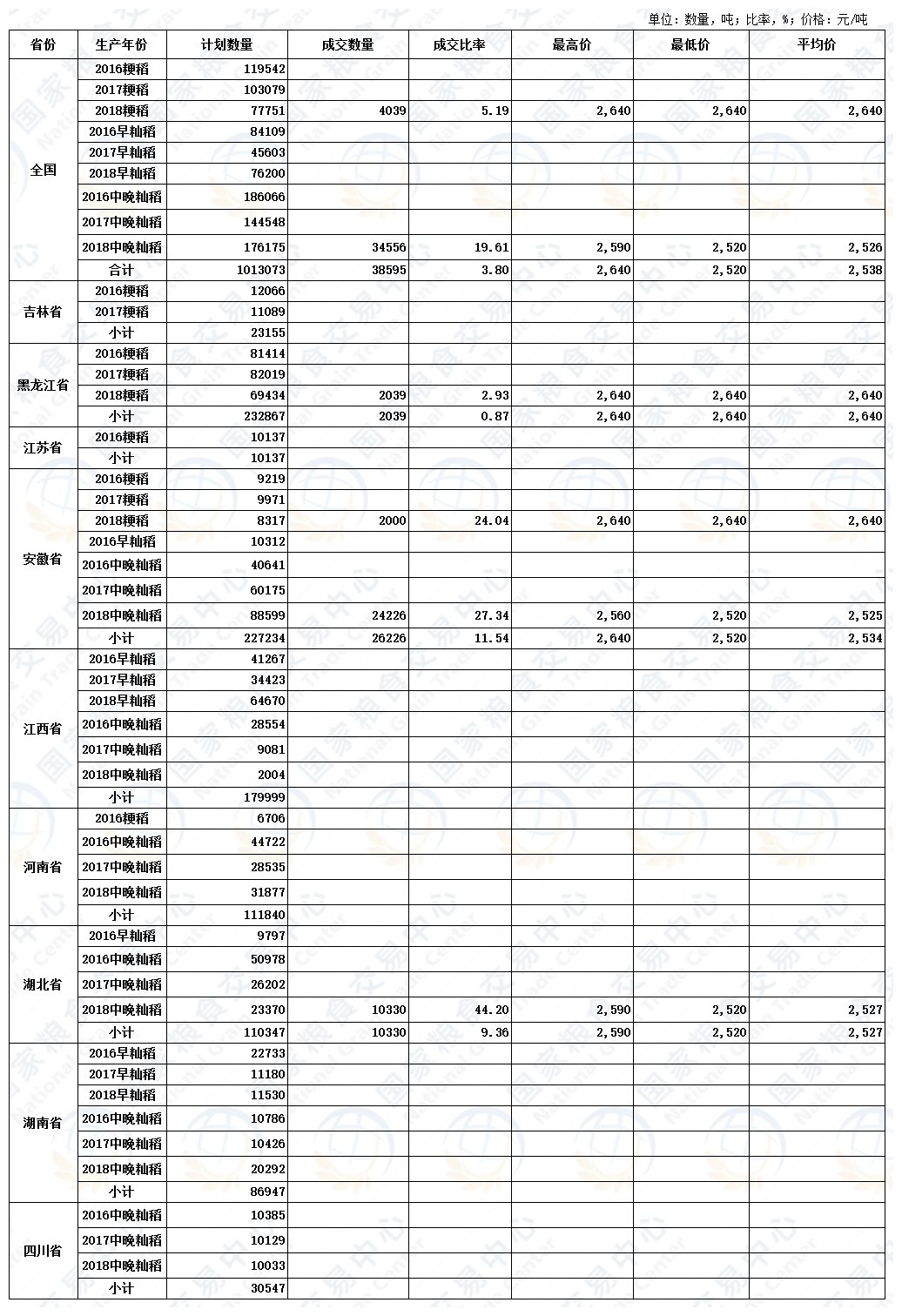 7月12日最低收购价稻谷(2016-2018年)交易结果