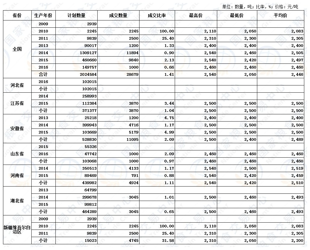 10月10日最低收购价和国家临时存储小麦交易结果