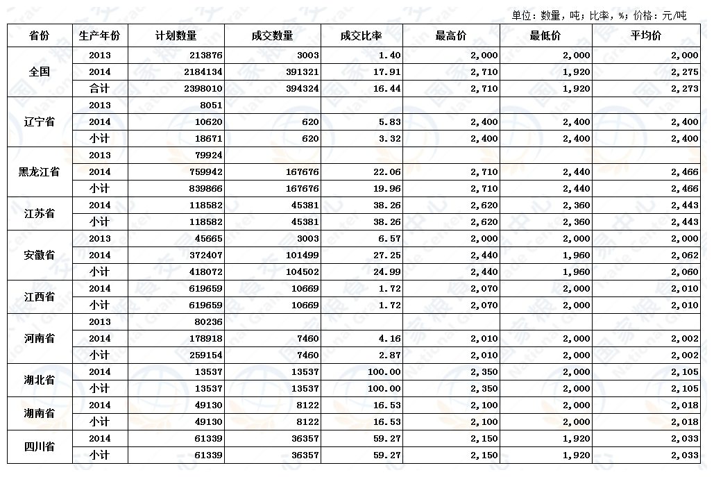 4月24日稻谷(2013、2014)交易结果