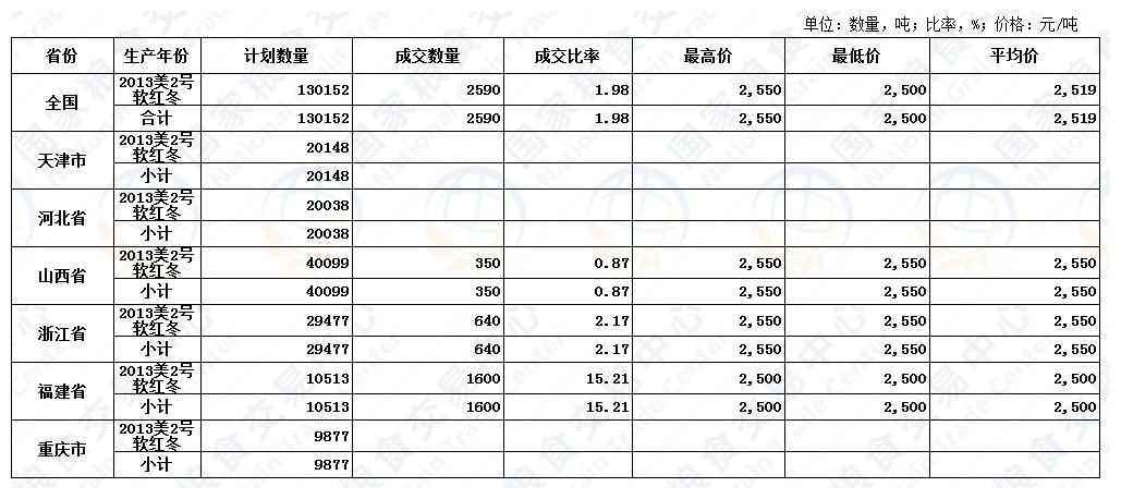 9月26日国家临时存储进口小麦交易结果