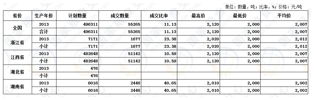 11月10日最低收购价稻谷(2013年)交易结果