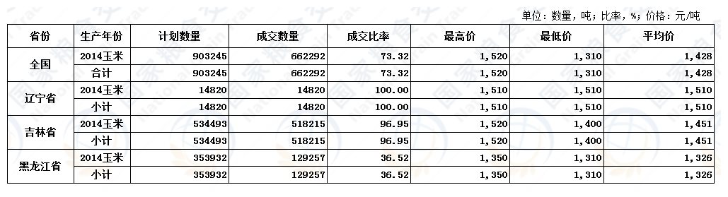 10月19日中储粮委托包干销售(中粮承储)玉米交易结果