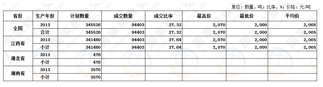 1月19日最低收购价稻谷(2013年)交易结果