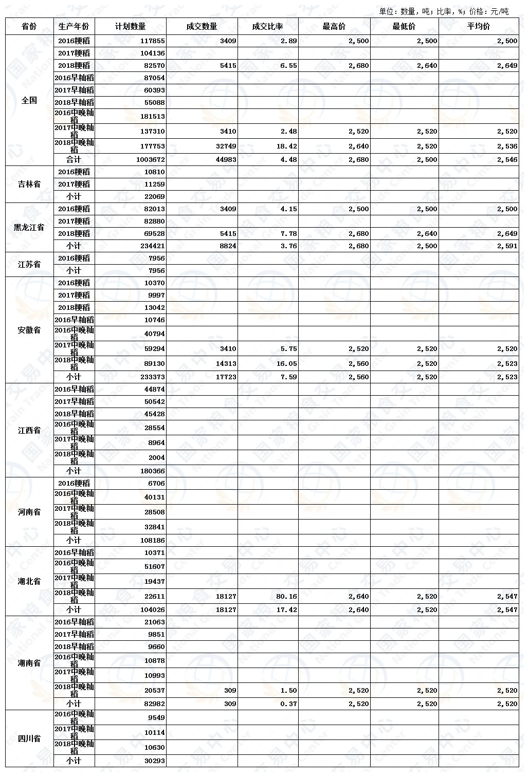 6月28日最低收购价稻谷(2016-2018年)交易结果