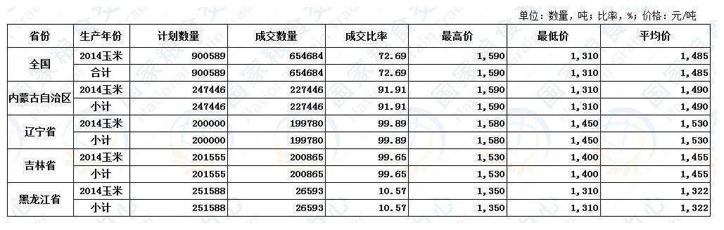 9月14日中储粮委托包干销售(中粮承储)玉米交易结果