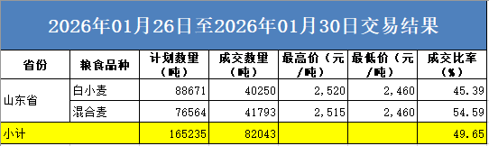 1月26日-1月30日 (2026年 第4期) 省粮油交易中心