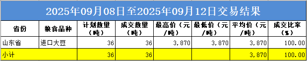 本周国家政策性粮食山东地区成交36吨。