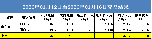 1月12日-1月16日 (2026年 第2期) 省粮油交易中心